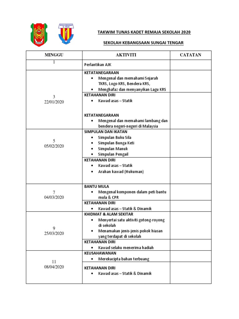 Jadual Aktiviti Tahunan Kadet Remaja Sekolah