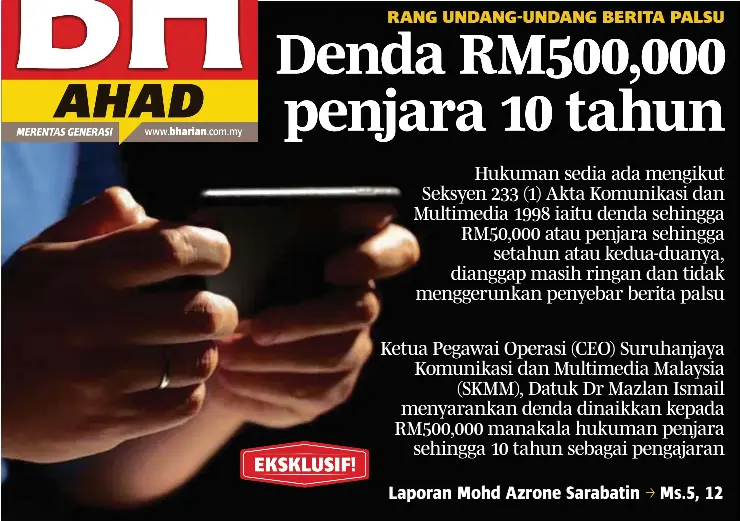 Pressreader Berita Harian 2018 02 18 Denda Rm500 000 Penjara 10 Tahun