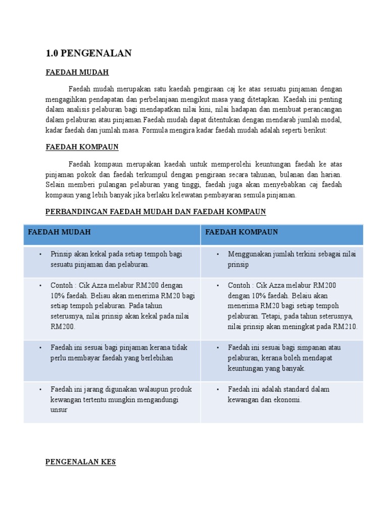 Perbezaan Antara Faedah Mudah Dan Faedah Kompaun