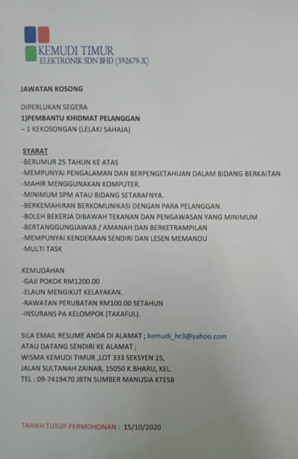 Kemudi Timur Elektronik Sdn Bhd Kota Bharu Lot 2442 Telefon 09 788 0223