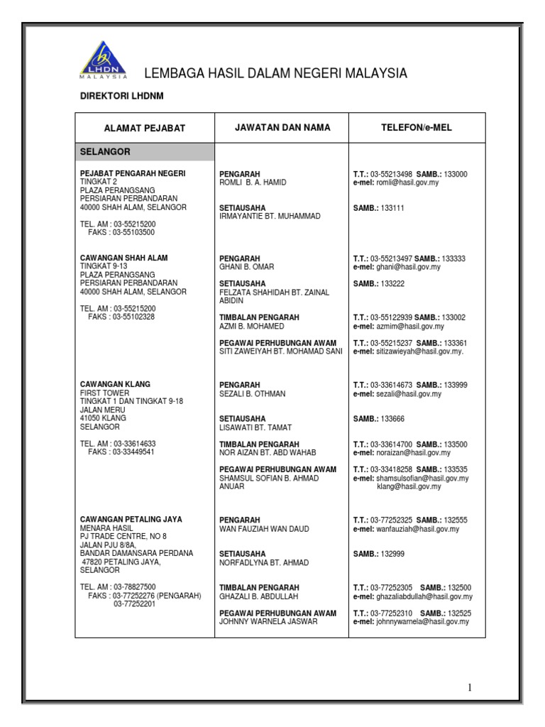 Lembaga Hasil Dalam Negeri Malaysia Direktori Lhdnm