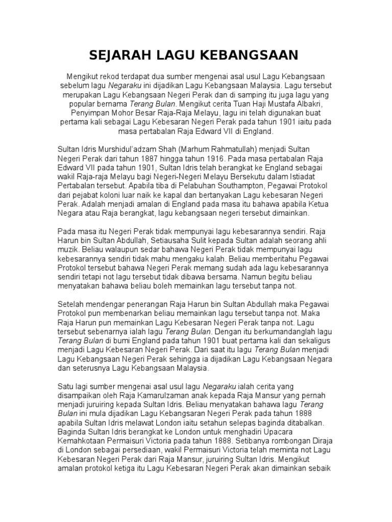 Sejarah Dan Kaitan Irama Lagu Negeri Perak Dan Negaraku