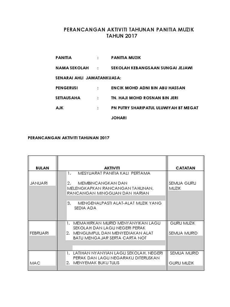 Perancangan Aktiviti Tahunan Muzik 2017