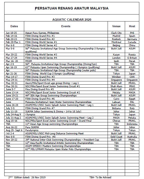 Amended Aquatic Calendar 2019 V3 Ikan Bilis Swimming Club 1971 Kl